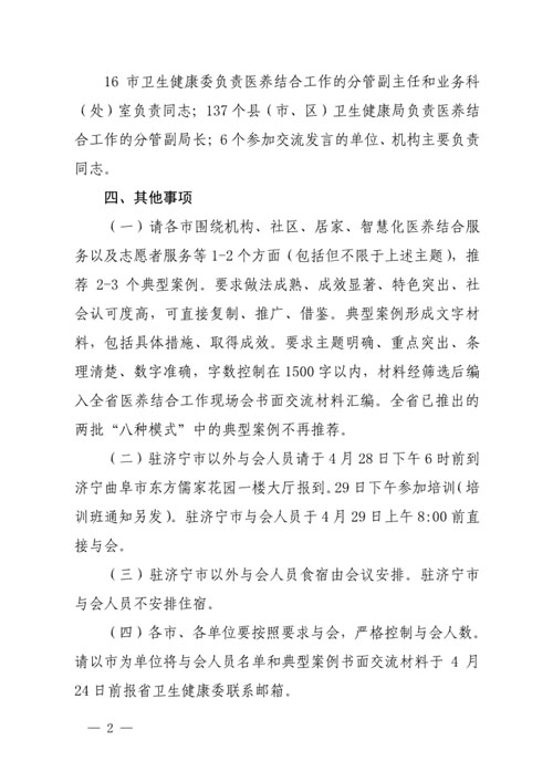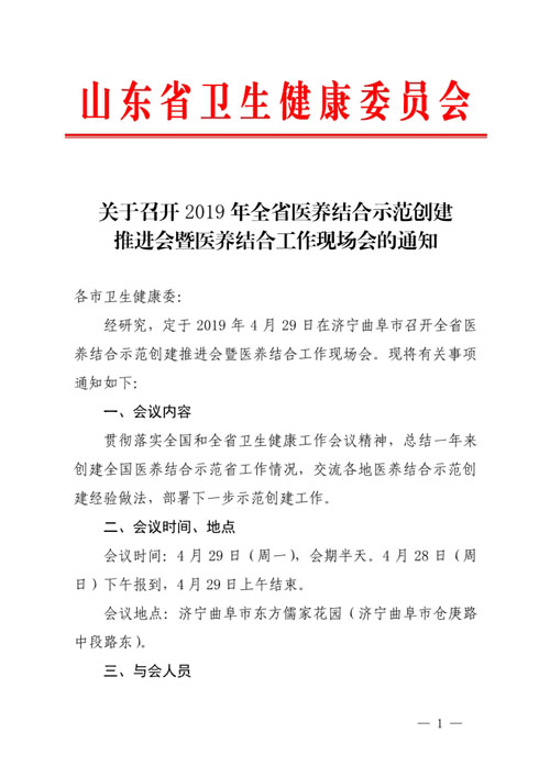 2019年全省医养结合示范创建推进会暨医养结合工作现场会2019年4月29日上午8时左右,山东普瑞森医疗设备股份有限公司各部门负责人在王总的带领下参加在曲阜市举行的“2019年全省医养结合示范创建推进会暨医养结合工作现场会”,并陪同省卫健委领导参观小雪社区卫生服务中心医养结合示范点。