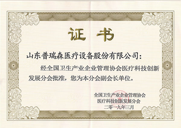 热烈祝贺山东普瑞森医疗设备股份有限公司被评为副会长单位