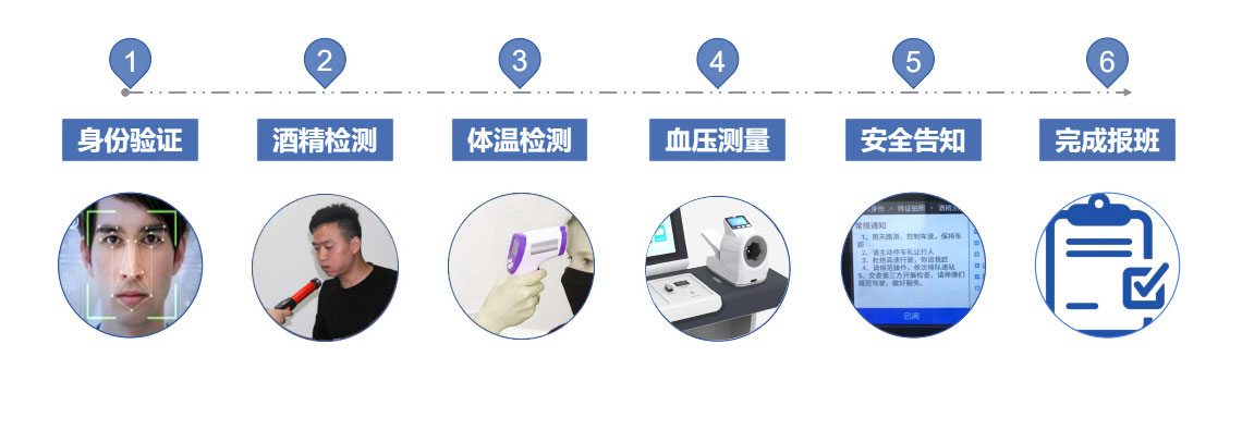 新款岗前健康检测一体机,又名岗前体检一体机,驾驶员自助体检机,岗前检测一台机,岗前检查一体机等,应用于城市公交、物流等运输企业,司机上岗前“ 身份识别、血压、心率、酒精、体温、血氧、指纹识别、考勤打卡” 等项目的测试考核,同时有岗前报班排班系统等,与传统的人工岗前考勤相比,全流程自动化,优势十分明显。