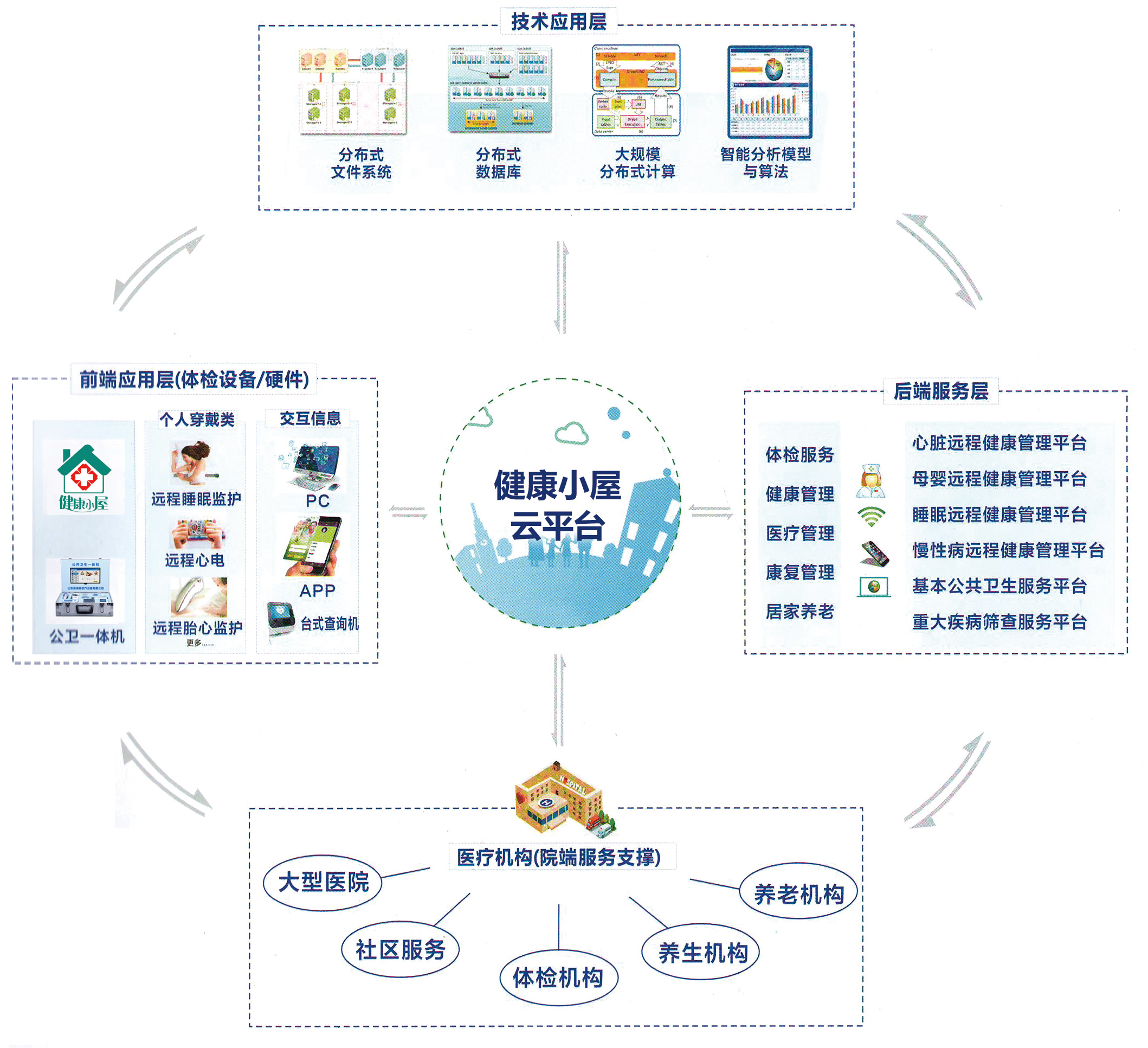 整体运行模式为: 社区健康小屋=“健康小屋 (系列) +健康云平台+社区医生服务”