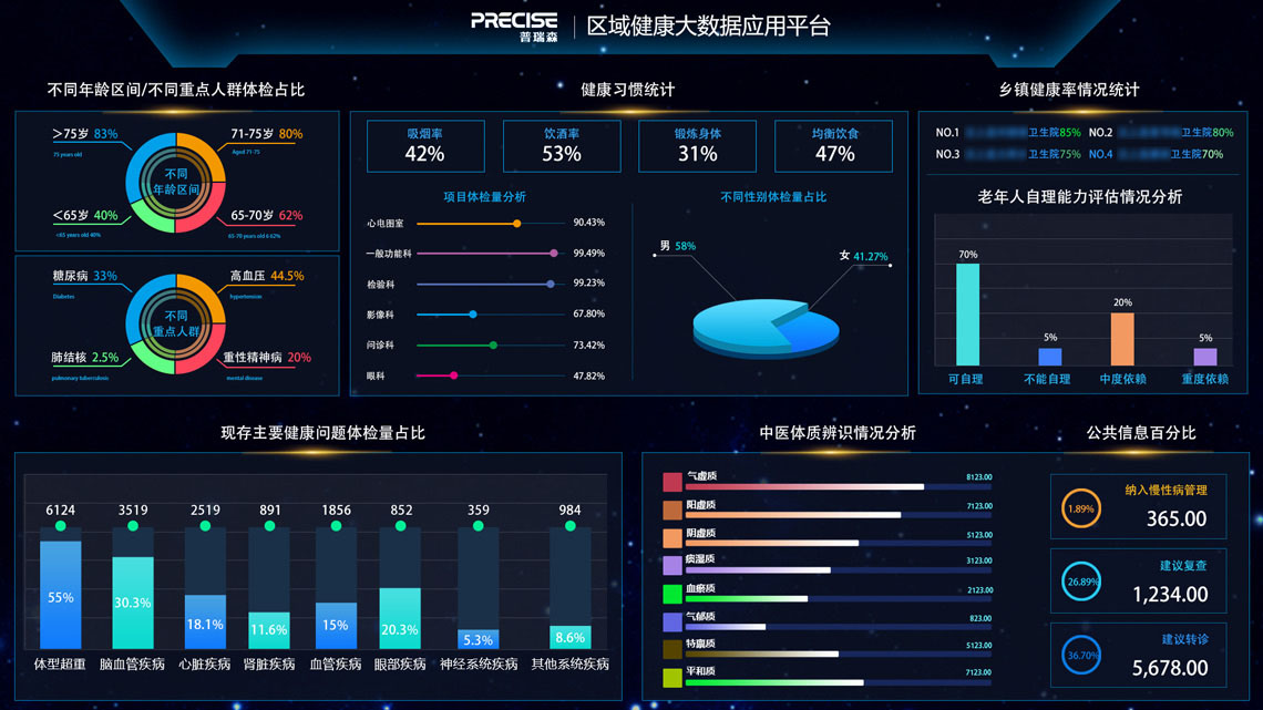 普瑞森·区域健康大数据应用平台,由数据中台、AI应用框架和基于大数据的智慧应用三大部分组成,通过平台汇聚各类医疗健康数据,形成完整的大数据体系,实现基于大数据和AI的智慧应用创新,赋能辅政、助医、惠民和惠业。